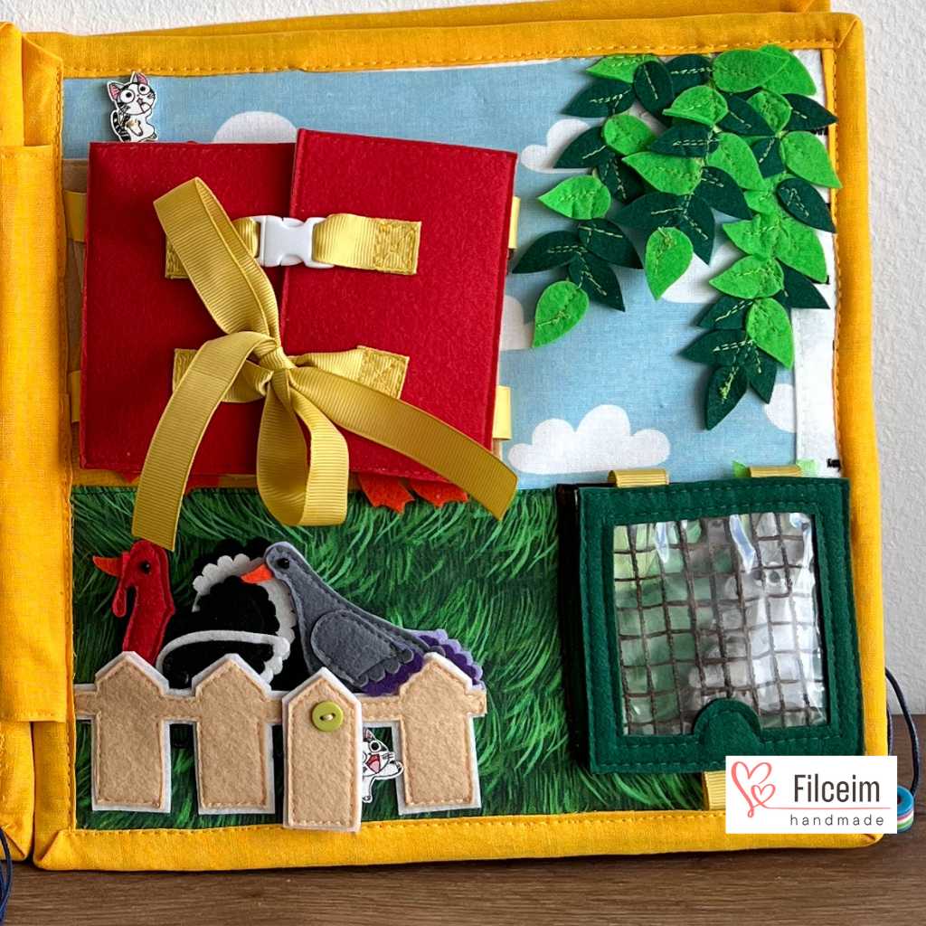 A könyv mérete 25 x 25 cm, kinyitva 50-52 cm. Becsukva magassága 3-4 cm, és 4 feladat oldalt tartalmaz.Ha a könyv rendelésre készül, akkor az első oldalára rávarrható a gyermek neve is, így még egyedibbé és személyesebbé teheted az ajándékot.