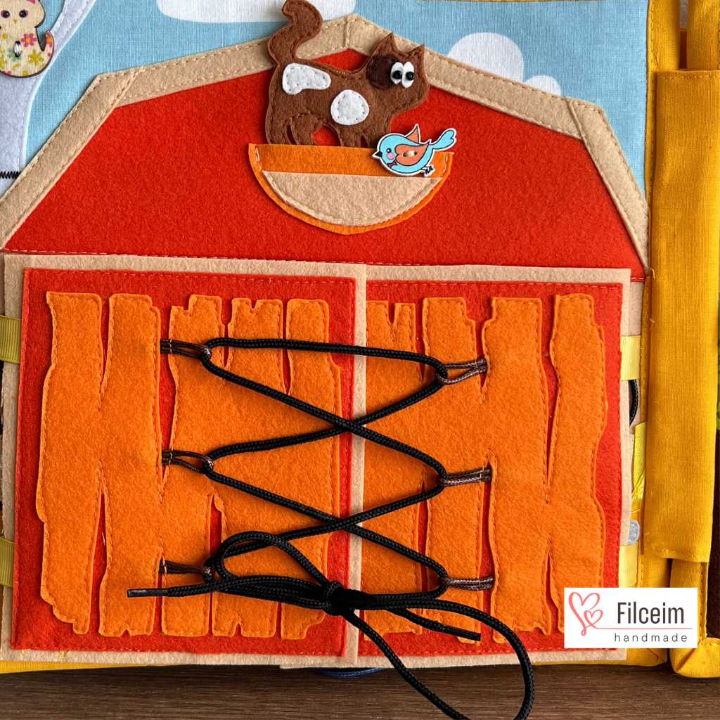 - Fűzd be a pajta ajtaját, és köss masnit: Fejleszti a finommotoros készségeket és a kéz-szem koordinációt.