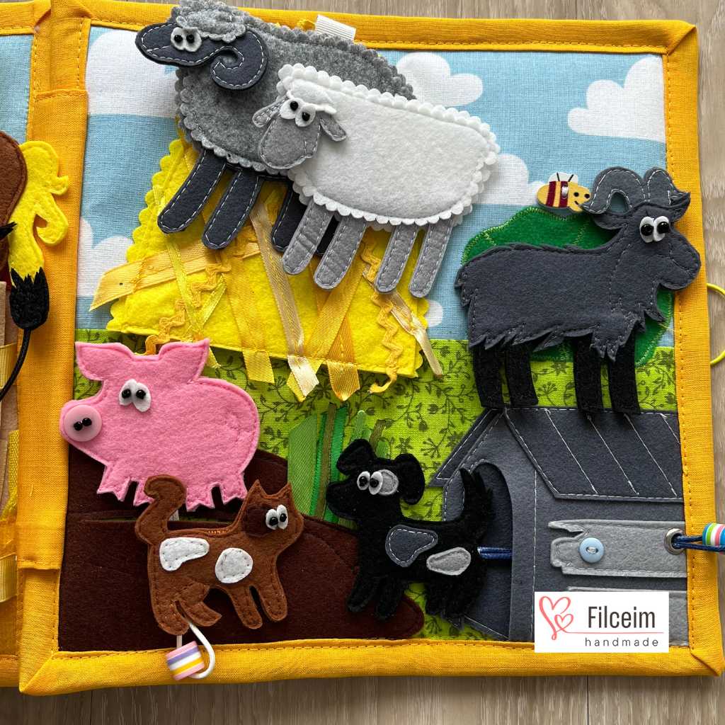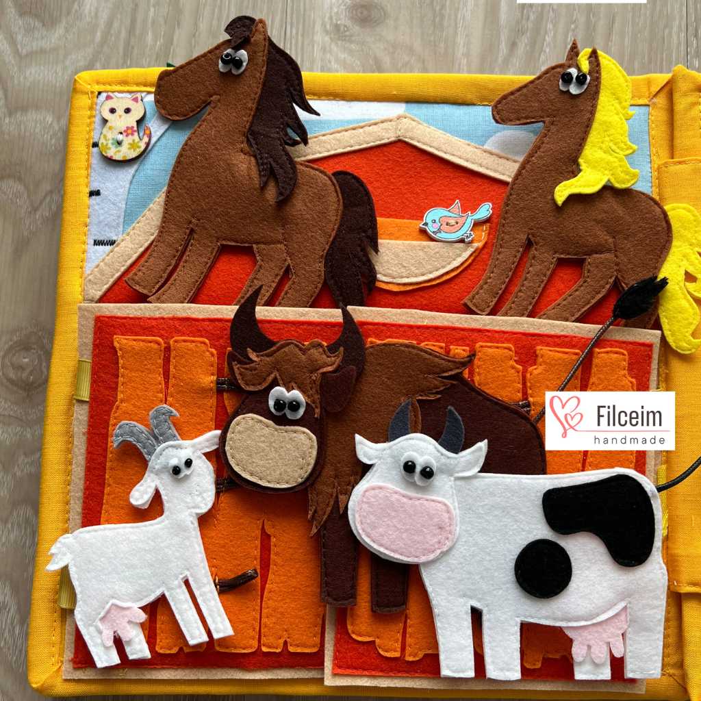 Farm csendes könyv filc háziállatokat, állatpárokat és készségfejlesztő feladatokat rejt